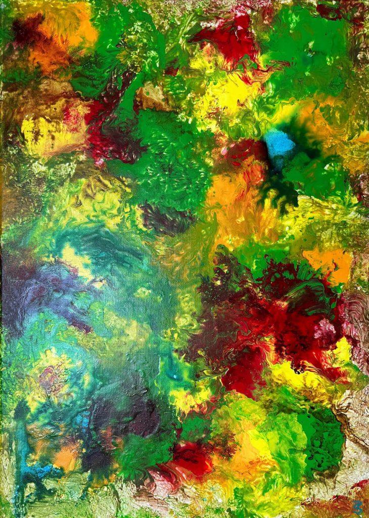 So entstehen spontane, intuitive Bilder, die ich bewusst nicht mit Titeln versehe.