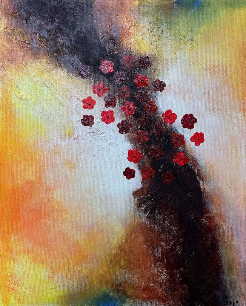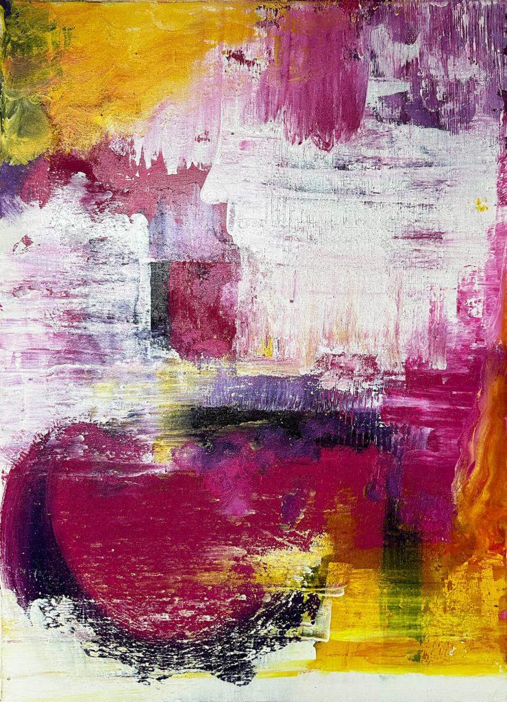 Vollkommen autodidaktisch malend konnte ich sehr schnell feststellen, wie wohltuend der Umgang mit Farbe – mal mit dem Pinsel, mal nur mit den Händen für mich ist.